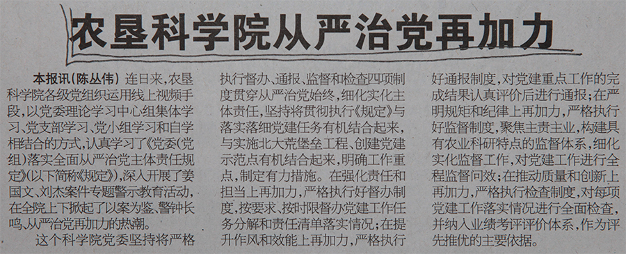 所属分类:院所新闻   信息来源:黑龙江省农垦科学院  关键字:治党   发布时间:2020/05/15